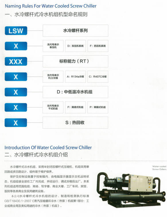 螺桿式冷水機組即風冷螺桿式冷(熱)水機組廣泛應用于賓館、商場、辦公樓、展覽館、機場、體育館等公共設施的舒適性中央空調系統,并能滿足電子、制藥、生物、輕紡、化工、冶金、制藥、電力、機械等行業的工藝性空調系統的不同使用要求。