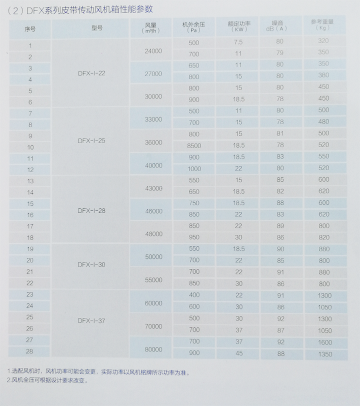 1、BF 型風機箱概述 1.1.BF 型風機箱葉輪采用前傾式多翼葉輪和低噪聲外轉子電機,電機與葉輪為直聯,風機噪聲比皮帶傳動式風機箱低。風機安裝形式分臥式(W)和立式(L)兩種。 1.2.為適應不同場所噪聲的要求,風機均可配不同長度的消聲器,也可將風機消聲型箱體加厚,使風機噪聲更低。 2、BF 型風機箱工作條件 工作溫度:-20~+40℃; 濕度:小于90%; 介質條件:空氣(含塵量不超過100mg/m3); 工作電源:三相、380V/50Hz. 3、BF 型風機箱應用 風機可廣泛應用于辦公、賓館、博物館、體育館、文教衛生等空調工程通風換氣。 4、BF 型風機箱配置 4.1. 標準配置 葉輪;外轉子電機機殼(蝸殼、集流器、支架);消聲型箱體;進出風口法蘭。 4.2. 備選件及附件(訂貨時注明是否購買) ※減振設備;※控制箱;※消聲器;※對接法蘭。 5、BF 型風機箱加工工藝 5.1.風機葉輪、機殼為優質鍍鋅板,全部模具化生產,采用鉚接、咬接等手段,表面清潔平整、不存在焊接變形現象。 5.2. 風機消聲型箱體采用框架,箱板拼裝結構,框架采用先進的金屬冷彎機組一次拉伸而成(也可根據用戶需要采用鋁合金型材),箱板外層為彩涂板、表面清潔美觀、耐腐蝕性強,內層為鍍鋅消聲微穿孔板,夾層超細玻璃棉,可進一步降低噪聲。產品可進行拆裝,現場安裝。
